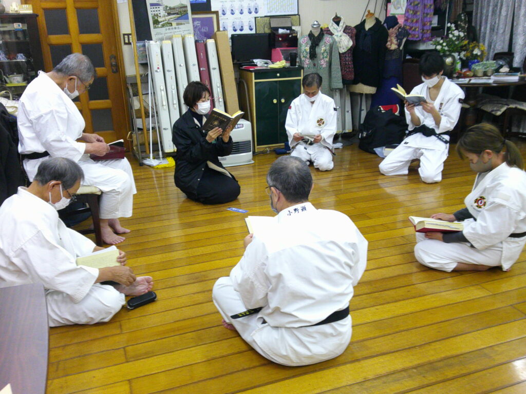 少林寺拳法の修練は技だけではありません。正しい生き方ができるように開祖の教えを理解するのも大事な時間です。水戸葵道院では、道院の修練の中で、開祖の教えの原本の「教範」を読み、共通理解を図っています。一人では読み進めるのが難しくても、皆で協力することで読み進めることができ、仲間の意見や解釈を聞くことで、内容の深い理解に繋がっています。 カテゴリー: 教え道院 0件のコメント コメントを残す コメントをキャンセルメールアドレスが公開されることはありません。 ※ が付いている欄は必須項目です 名前 * メール * サイト ご意見、ご感想をお願いします。 次回のコメントで使用するためブラウザーに自分の名前、メールアドレス、サイトを保存する。